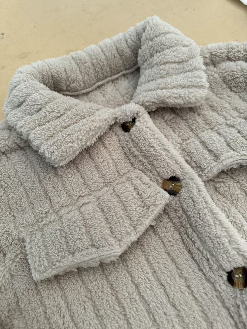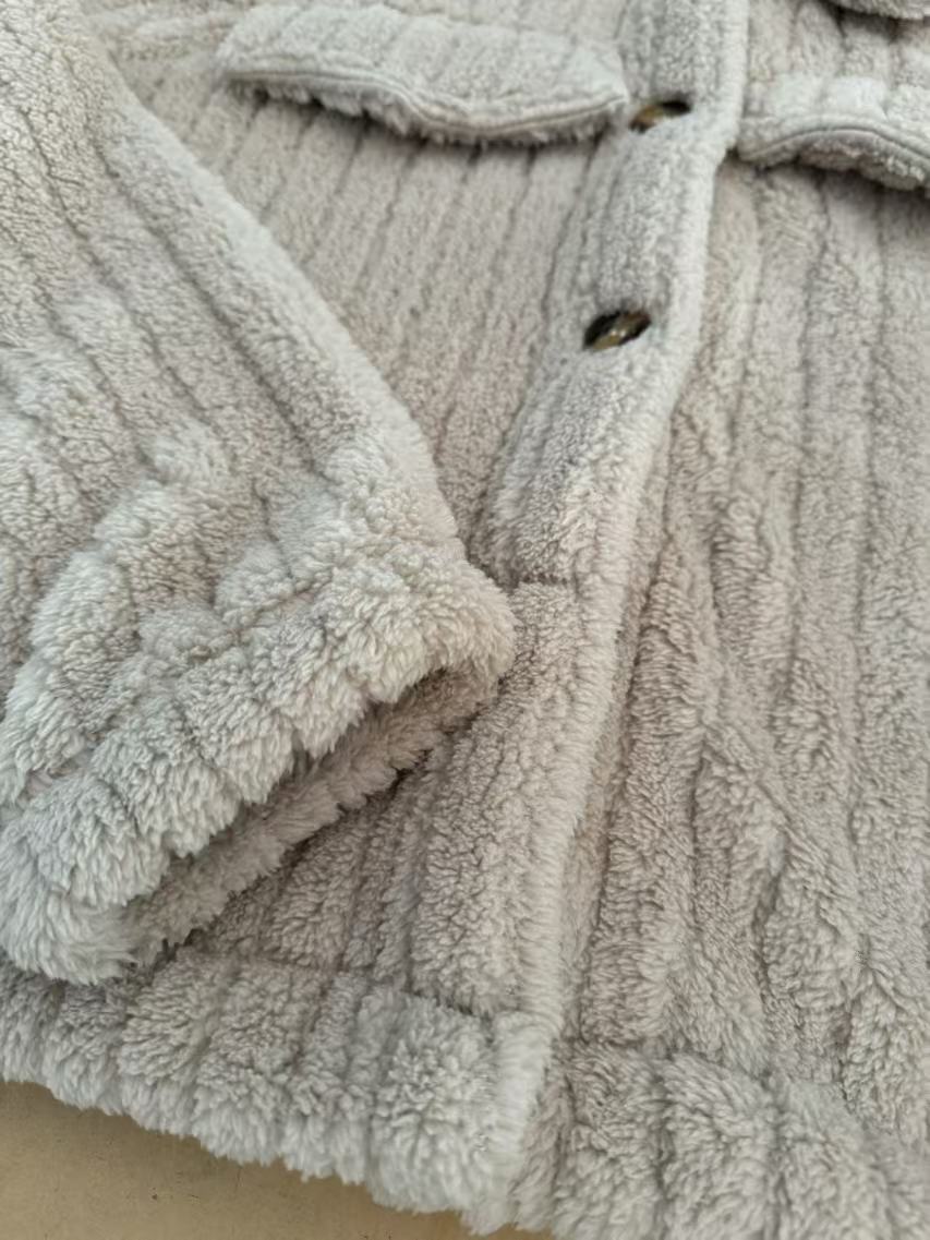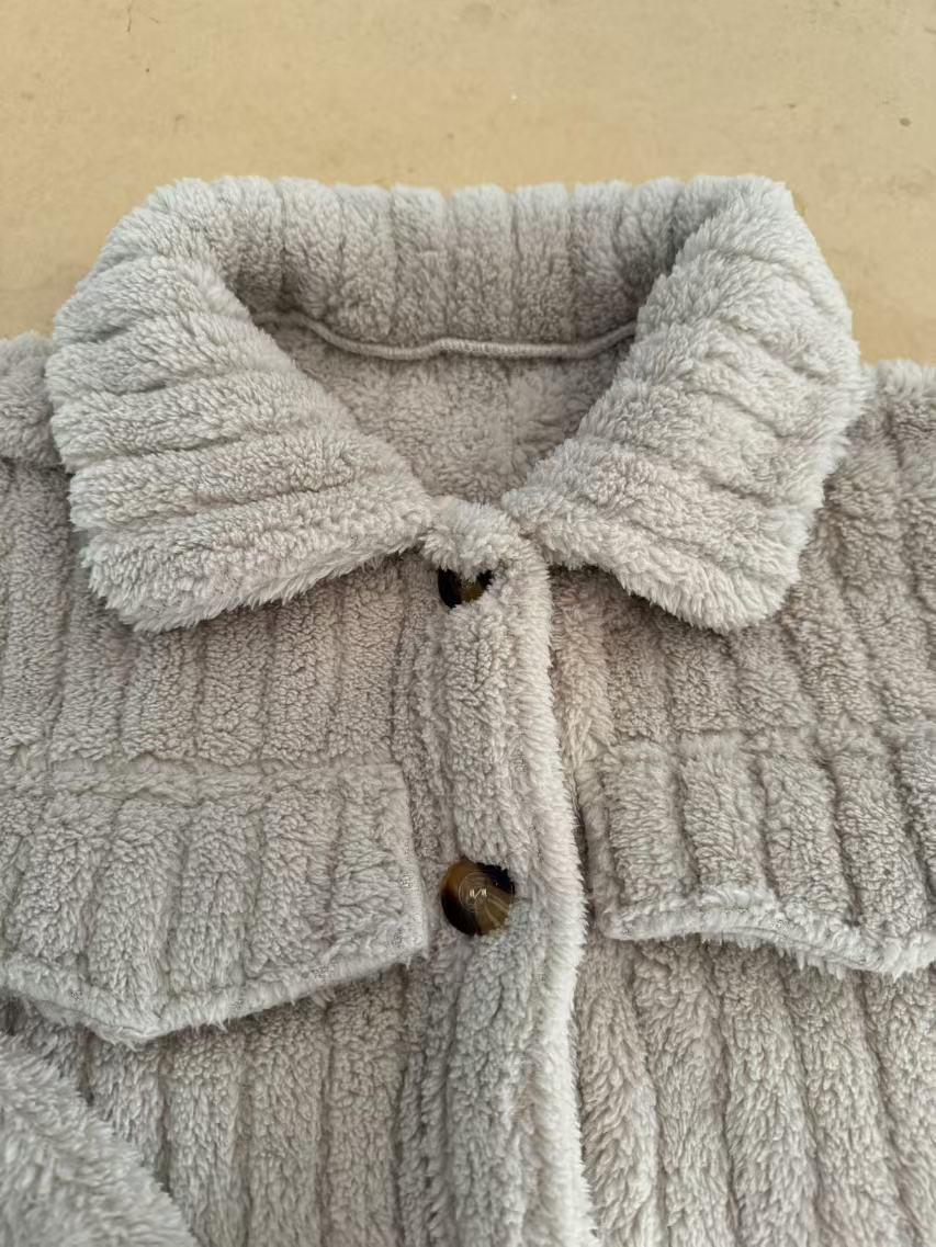 Cappotto corto da donna con colletto a revers e taglio oversize, ideale per un look moderno e confortevole. Realizzato in velluto double-face per una texture morbida e lussuosa su entrambi i lati. La chiusura monopetto con bottoni e la vestibilità ampia lo rendono perfetto per abbinamenti con capi a vita alta.