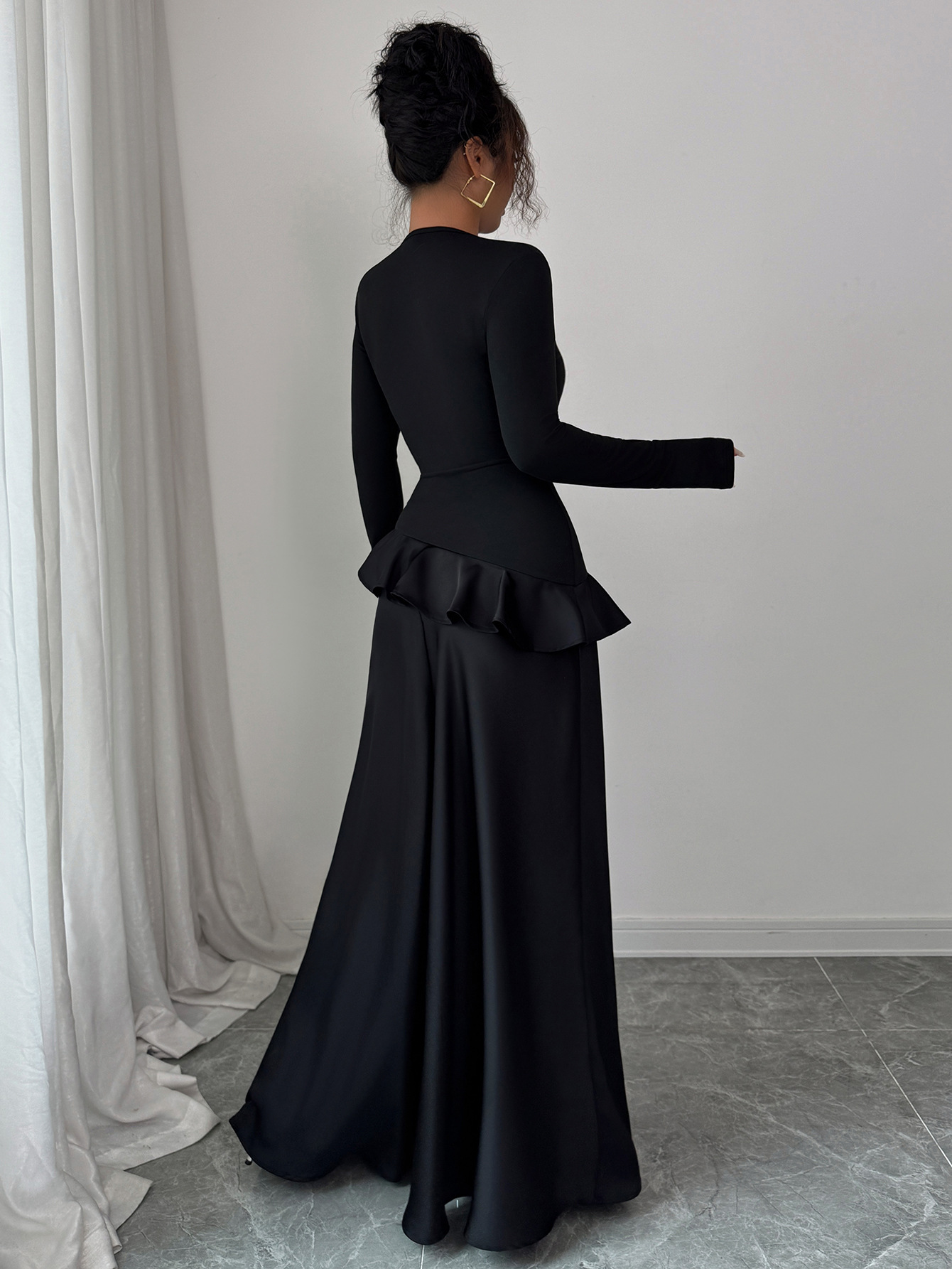 Realizzato in satin di poliestere morbido e resistente, garantisce comfort per tutta la giornata ed è anti-piega, perfetto anche per occasioni prolungate. La scollatura rotonda e le maniche lunghe completano uno stile elegante e versatile, adatto sia a eventi formali che a serate speciali.