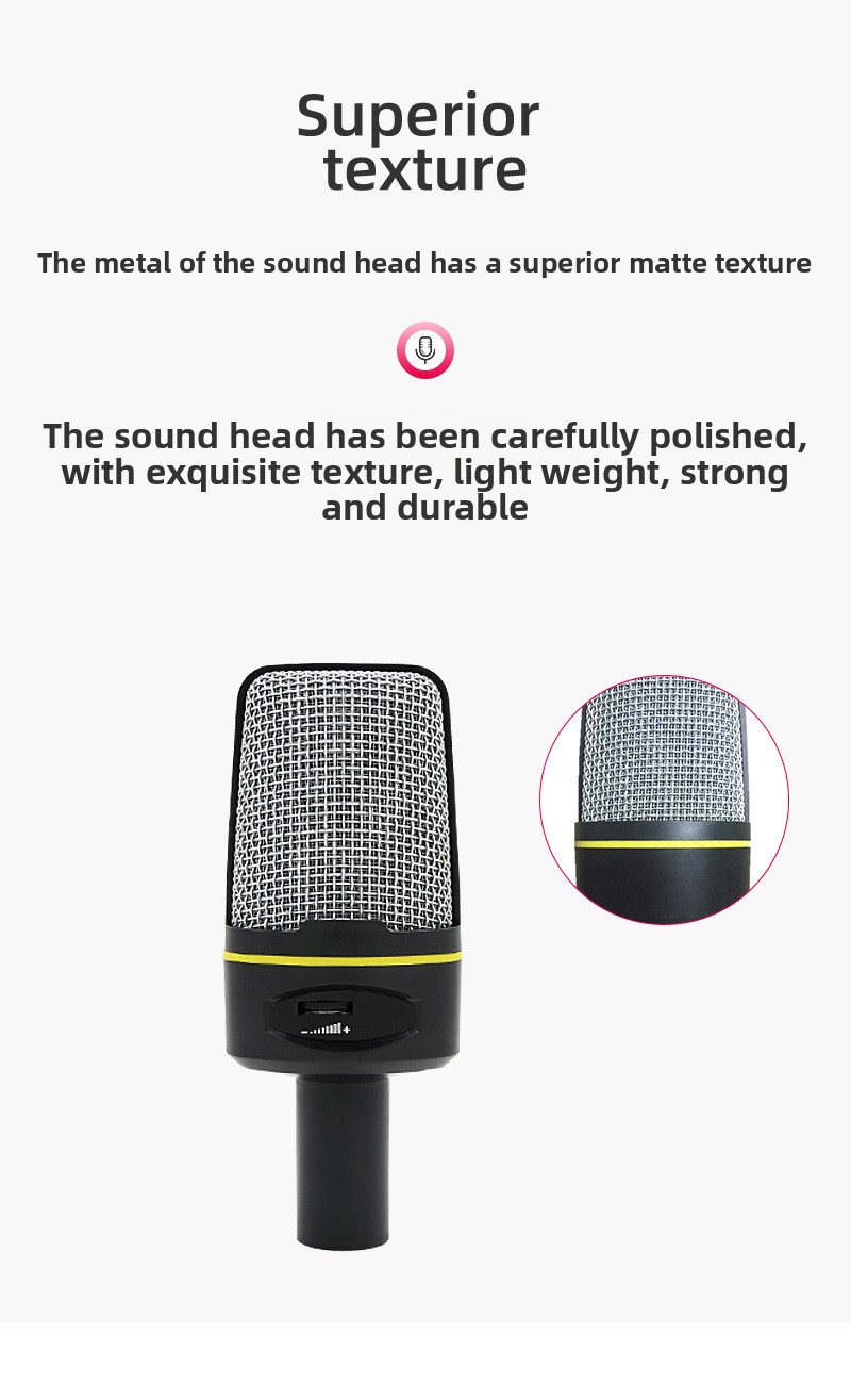Microfono Karaoke per PC con Jack 3,5mm – Omnidirezionale, Controllo Volume, da Scrivania, Leggero (ABS)