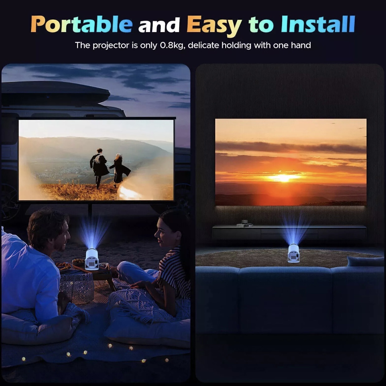 Home cinema, cameretta, serate film con amici, gaming casual, presentazioni e proiezioni rapide in qualsiasi ambiente.