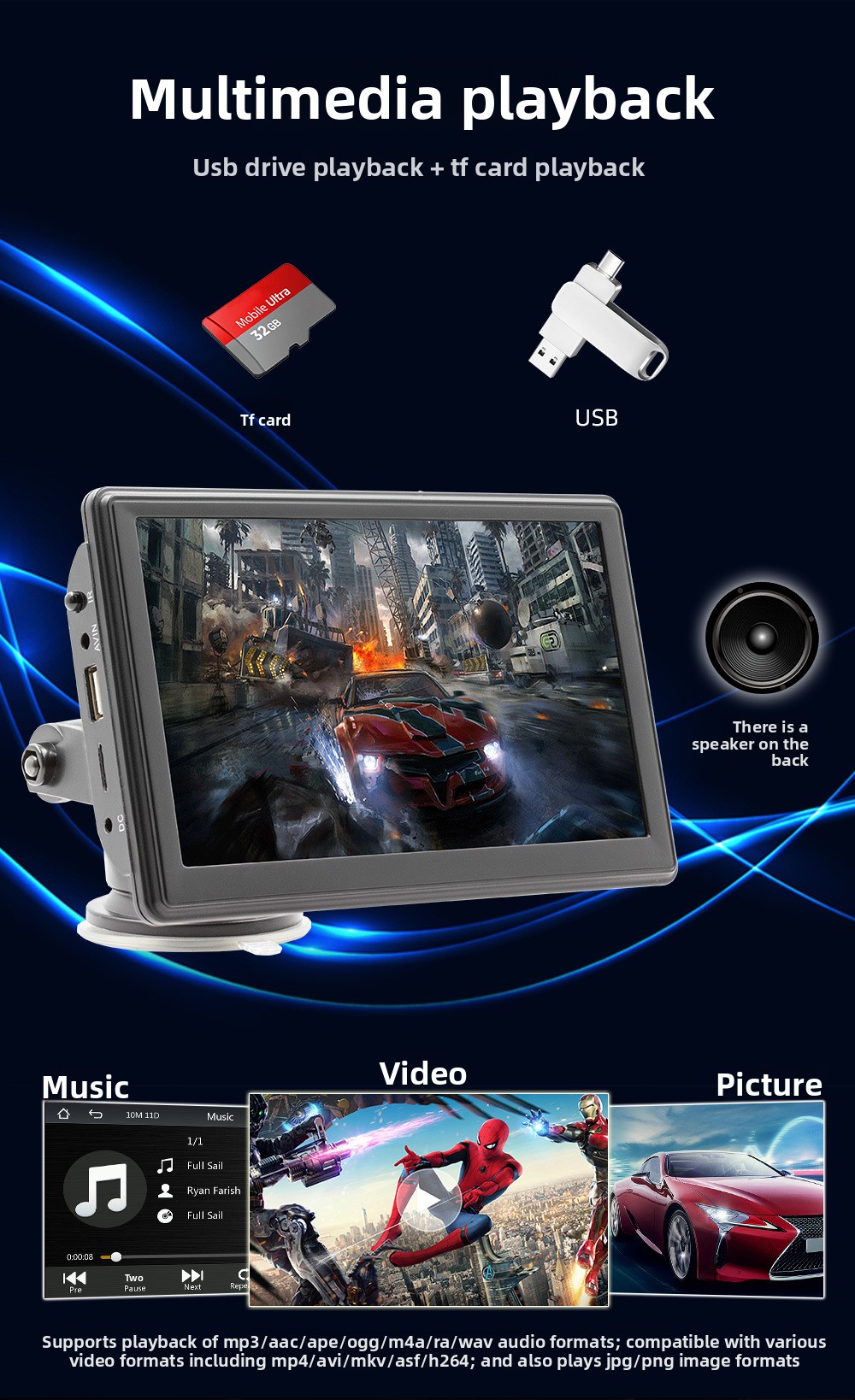 Funzioni complete: supporta MP5, screen mirroring e ingresso retrocamera.