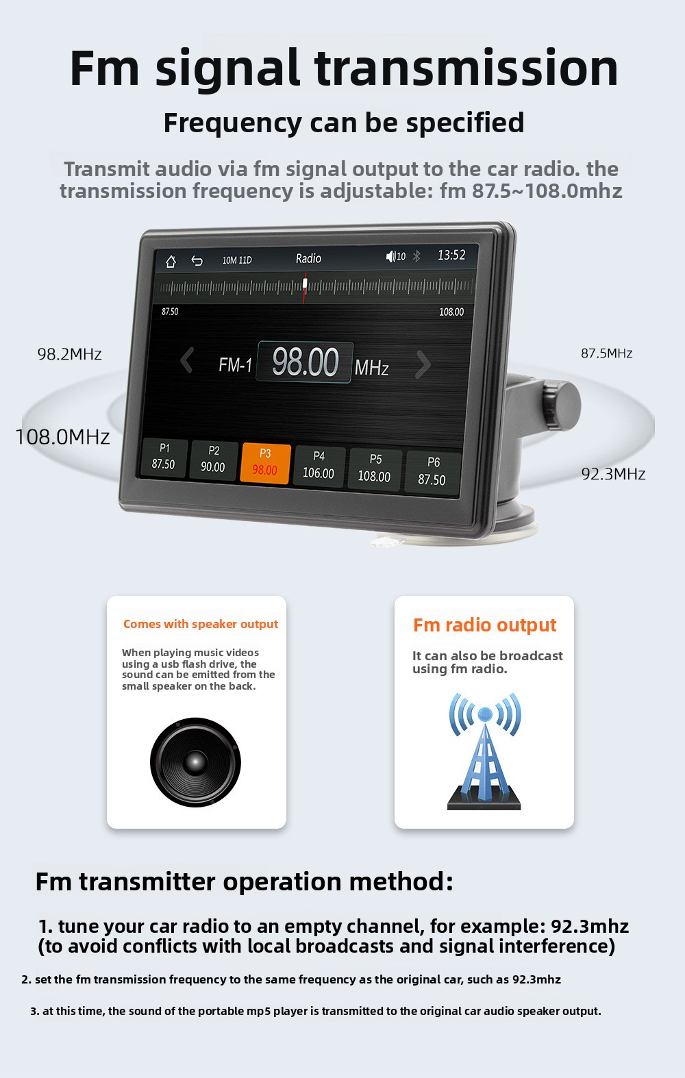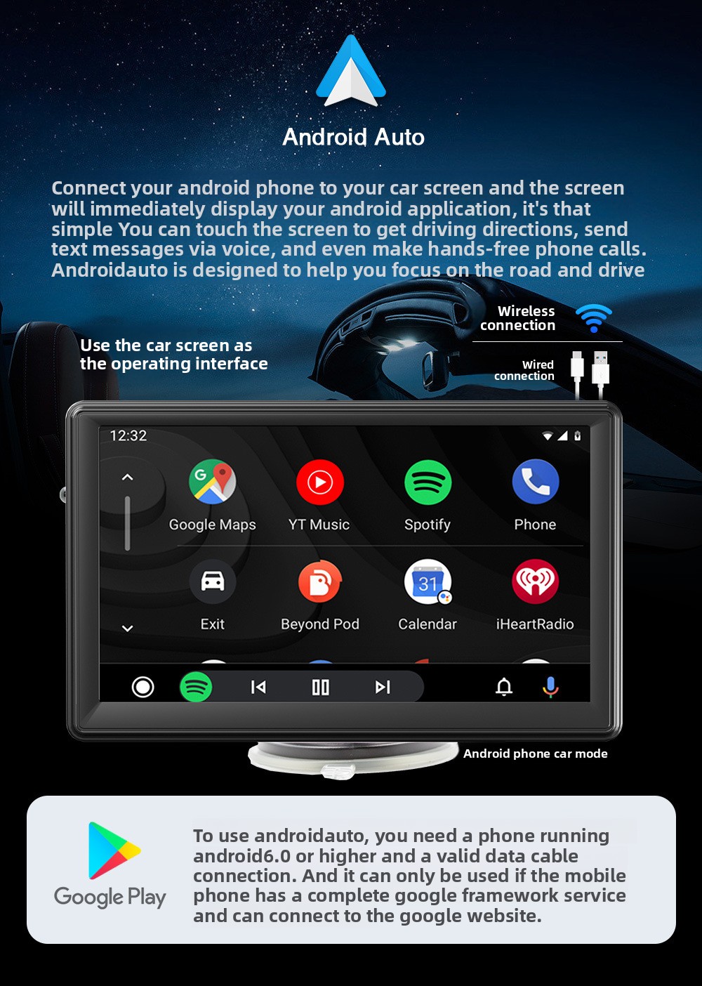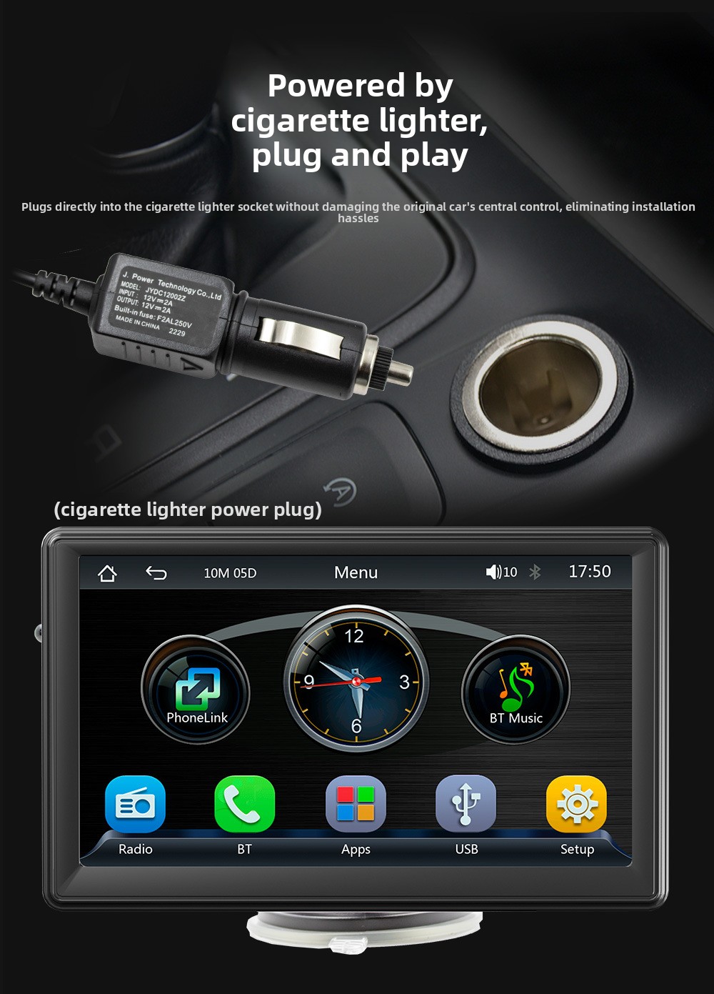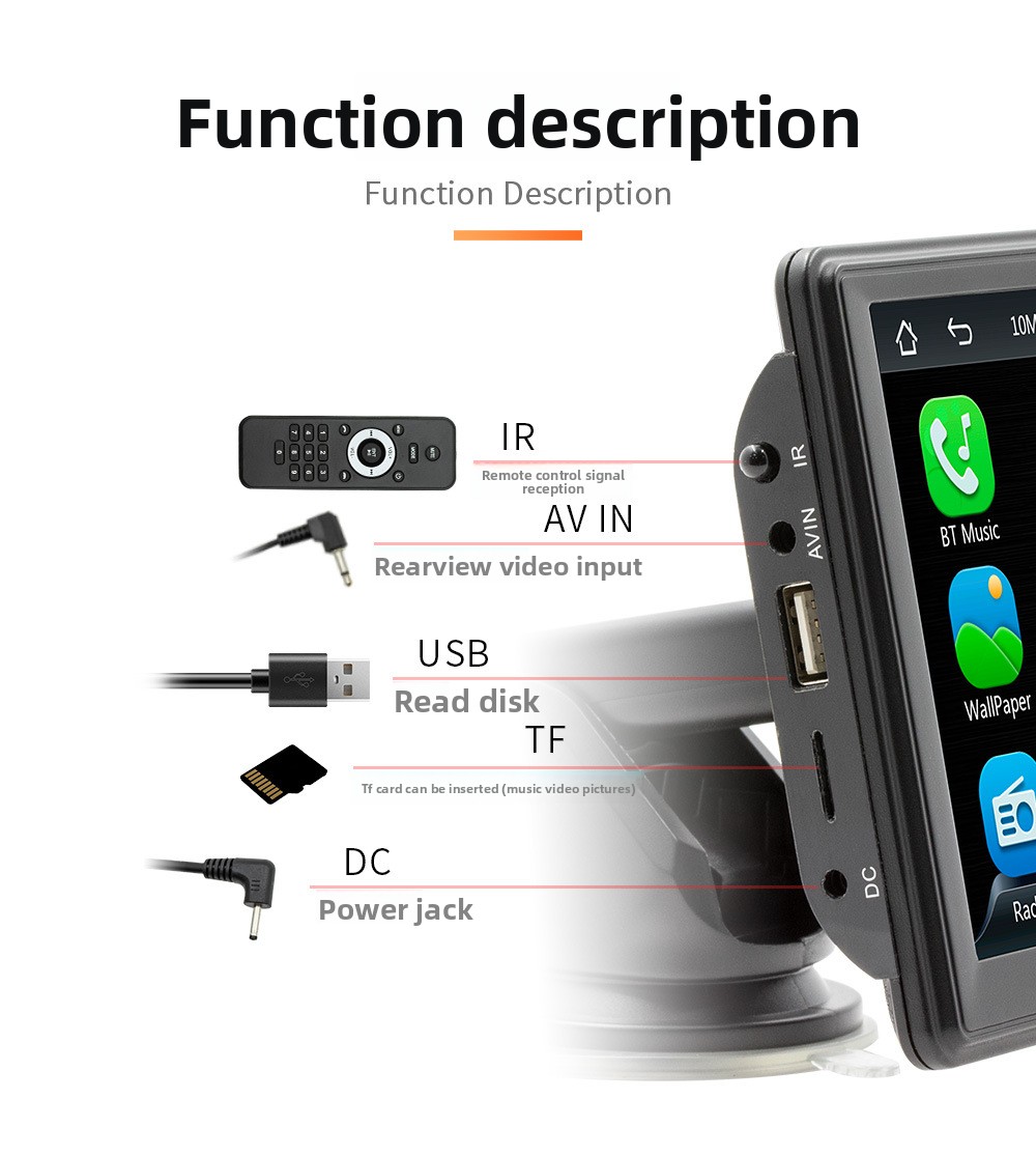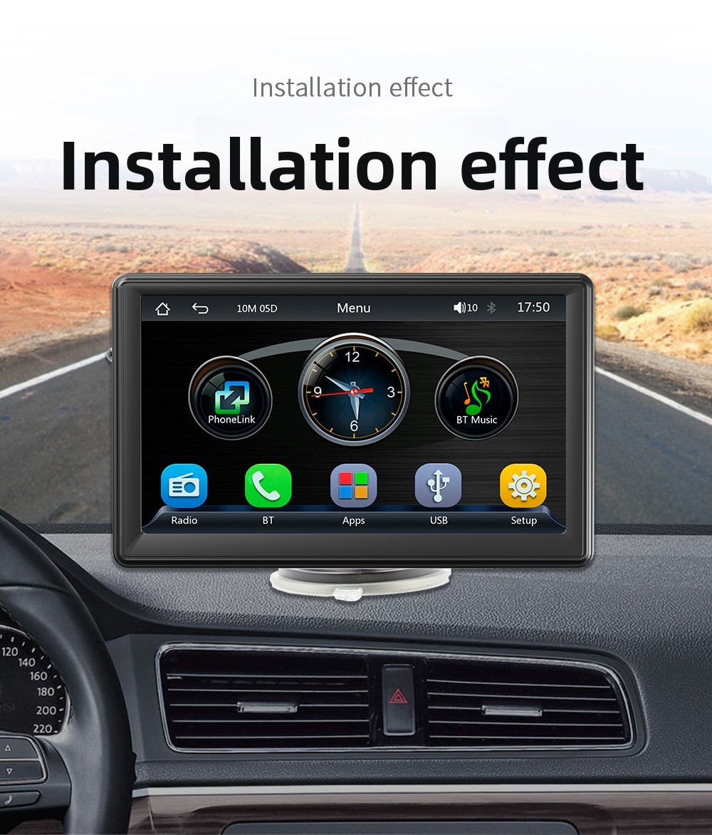 Oltre a CarPlay, integra Bluetooth per streaming audio e vivavoce, supporta la riproduzione MP5, la proiezione schermo (screen mirroring) e l’ingresso per retrocamera per una maggiore praticità in manovra. L’alimentazione tramite accendisigari lo rende ideale per chi cerca un dispositivo plug & play compatibile con la maggior parte dei veicoli.